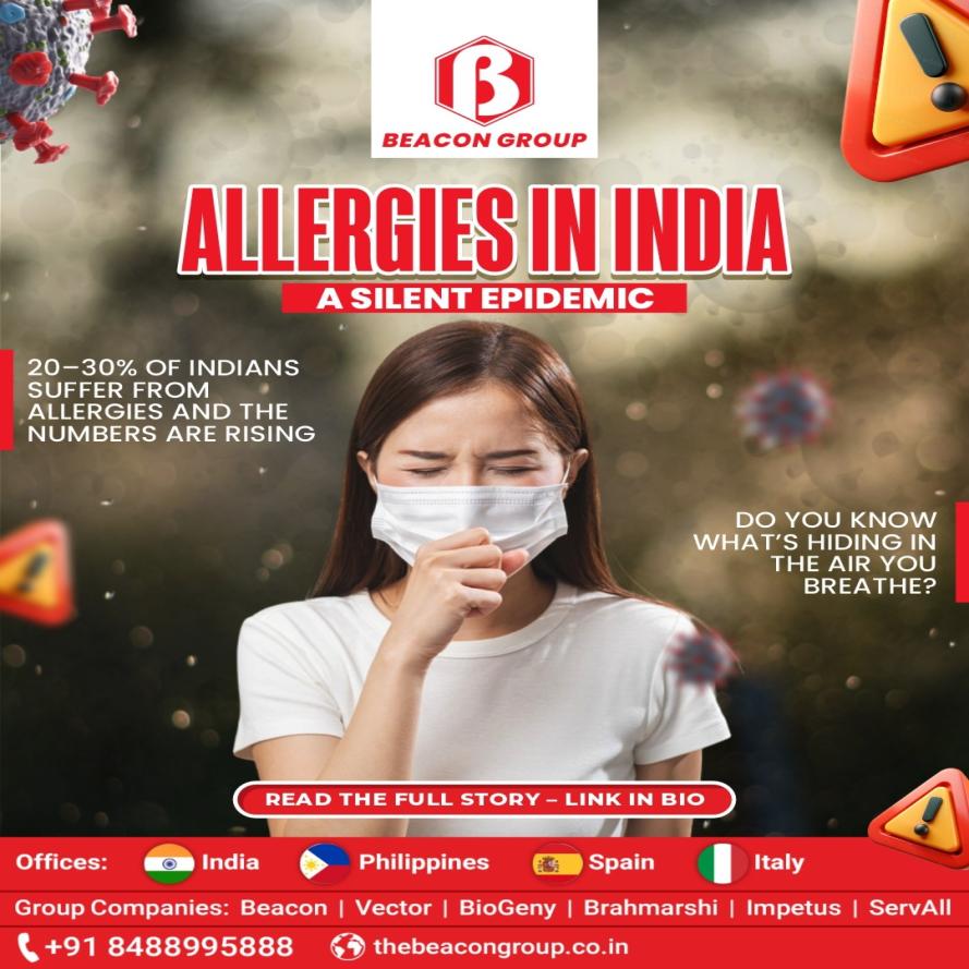 In India, allergy prevalence is significant, with studies reporting that 20-30% of the population experiences allergic rhinitis or other allergic diseases. This includes conditions like allergic rhinitis, asthma, and eczema, with allergic rhinitis being particularly prevalent.