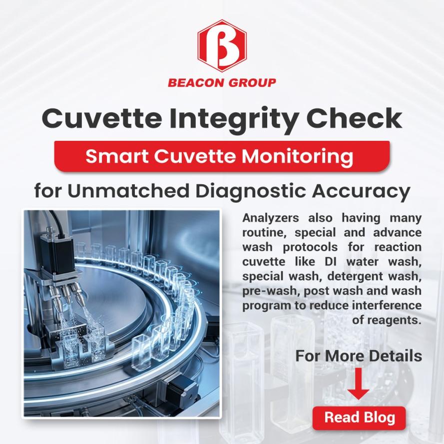 Beacon group of companies are offering range of fully automatic clinical chemistry analyzers having throughput of 200, 400 and 800 tests / hour. These clinical chemistry analyzers are equipped with all above mentioned advance features of “Cuvette Integrity Check”.