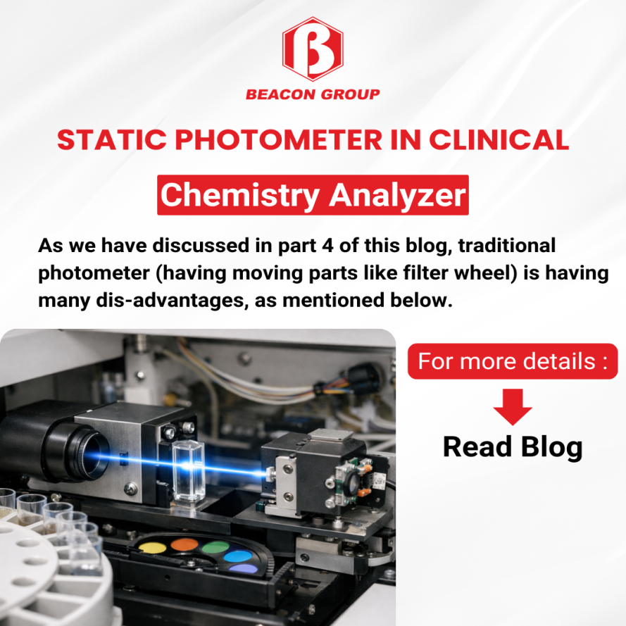Beacon group of companies are offering range of fully automatic clinical chemistry analyzers having throughput of 100, 200, 400 and 800 tests / hour. These clinical chemistry analyzers are equipped with advance static photometer.